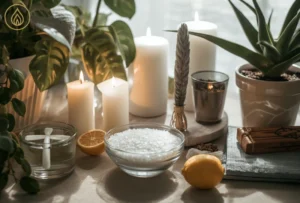 Abertura de janelas, luz natural, uso de velas brancas, plantas vivas, sprays energéticos, sinos e organização constante já criam uma defesa poderosa contra negatividade.