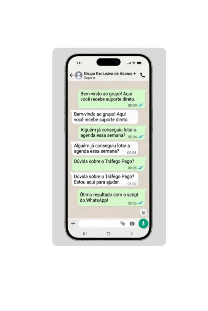 Transforme conversas no WhatsApp em agendamentos pagos de forma fluida. Você vai usar estruturas de conversa testadas que removem objeções e aumentam sua taxa de conversão.