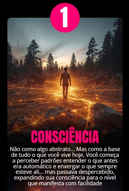 Tudo o que você vai acessar aqui foi organizado em três pilares simples que, quando alinhados, começam a mudar a forma como sua realidade responde a você