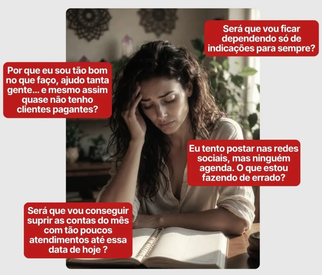 Continuar sofrendo com poucos atendimentos pagantes, dependendo apenas de indicações e vendo sua agenda quase vazia, mesmo sendo um bom terapeuta.